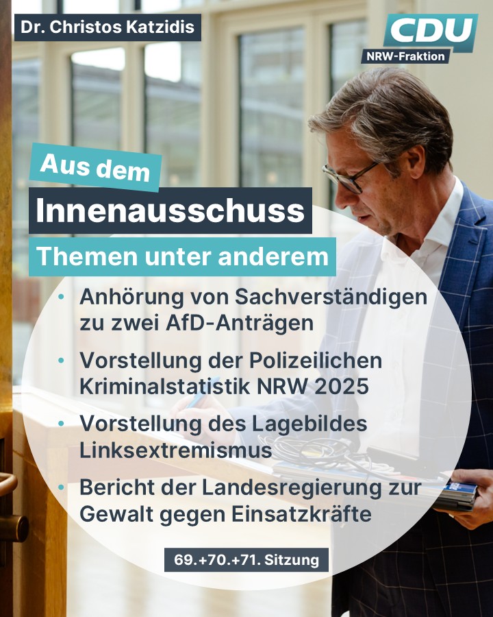#Innenausschuss #LandtagNRW #NRWkommtvoran #guterplan #cdu #cdunrw #wegenmorgen #TeamCDU #TeamWüst #CDUFraktionNRW #ChristosKatzidis #KlartextKatzidis